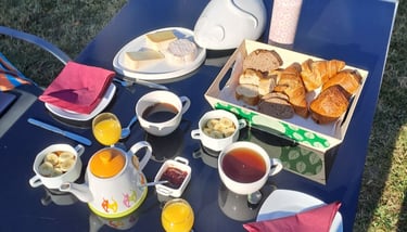 Nous offrons également un petit déjeuner copieux et savoureux, préparé avec des ingrédients frais, pour bien commencer votre journée.